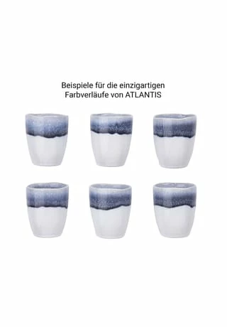 Mit unserer Geschirrserie Atlantis im angesagten Boho-Stil und organischen Formen kommt Extravaganz auf den gedeckten Tisch! Die Tasse aus Steinzeug ist handgefertigt in Portugal. Durch die reaktive Glasur entstehen unregelmäßige Farbverläufe, die jedes Teil der Serie zu einem echten Unikat werden lassen. Atlantis ist in verschiedenen Farben erhältlich, die Sie miteinander kombinieren können und so für Abwechslung auf Ihrem Tisch sorgen. Durch eine Iris-ähnliche Farbzentrierung passen alle Teile perfekt zusammen. Jedes Teil der Serie ist spülmaschinen- und mikrowellengeeignet.