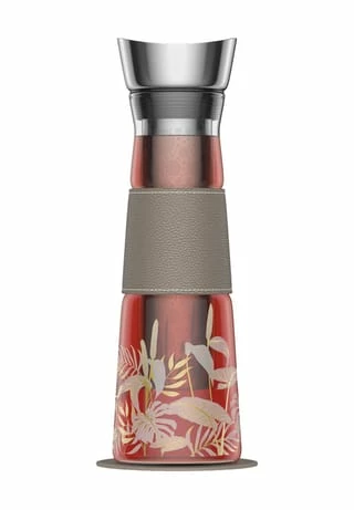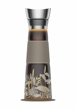 Besonderheiten: aus Borosilikatglas mit Kunstledermanschette