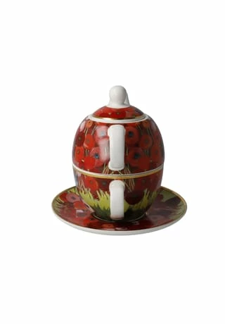 Katzen und Wohnaccessoires in sommerlichen Farbtönen bringen Wärme, Freude, Sonnenschein und Herzlichkeit in jedes Zuhause. Aquamarin, Sonnengelb und Fuchsia wirken belebend und bereiten gute Laune. Urlaubsstimmung pur mit dezenten Farben aus dem Paradies!Tea for One – Innamorati tra i papaveri Schnell und einfach ein Tässchen Tee zubereiten – kein Problem mehr! Denn in der Kanne ist die Tasse gleich mit integriert. Multifunktionales Set bestehend aus Teekanne, Tasse und passender Untertasse.Um die Brillanz der Farben und die Goldauflage zu schonen, ist Spülen per Hand mit mildem Reinigungsmittel empfehlenswert.Die beliebten Samtpfoten der Künstlerin Rosina Wachtmeister bezaubern mit ansprechender Farbgebung, filigranen Ornamenten und charmanten Details. Verspielt und farbenfroh schleichen sie sich in die Herzen aller Katzenfreunde. Stilvolle Wohnaccessoires in sommerlichen Farben ergänzen die Serie und verbreiten Urlaubsstimmung und Vorfreude auf einen paradiesischen Sommer!Rosina Wachtmeister, 1939 in Wien geboren, wandert im Alter von vierzehn Jahren nach Brasilien aus, wo sie ihre Studienjahre verbringt. Ihre erste große Liebe, ein italienischer Künstler, nimmt die junge Frau mit in seine Heimat. In Capena, einem mittelalterlichen Dorf nördlich von Rom, findet sie ihr neues Zuhause. Seit mehr als 20 Jahren arbeitet Rosina Wachtmeister erfolgreich mit Goebel zusammen und begeistert ihre Fans auf der ganzen Welt.
