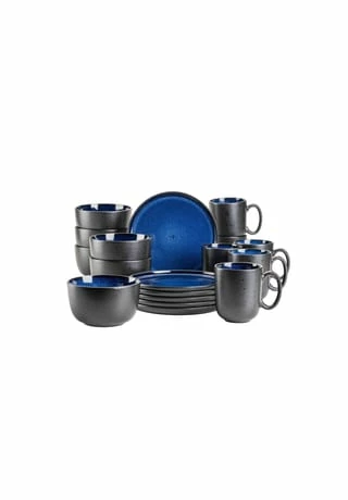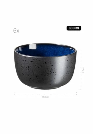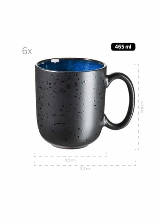 Die unvergleichliche Keramikgeschirr-Serie “Niara” der österreichischen Traditionsmarke Mäser verbindet auf einzigartige Weise selbstbewusste skandinavische Formen mit zwei unterschiedlichen, aufwändigen Glasurtechniken: Auf den Ober- bzw. Innenseiten der Geschirrteile fließen strahlende Farbschattierungen auf schwarzem Untergrund zu wunderbaren Maserungen zusammen. Die Außen- bzw. Unterseiten hingegen bestechen durch eine Mattglasur in Schwarz, welche mit glänzenden schwarzen Sprenkeln überzogen wurde. Durch die händisch aufgetragenen Farben ist jedes Teil in dieser Kollektion auf allen Seiten einzigartig gemustert. Mit ihrem exquisiten und individuellen Charakter ist die Kollektion “Niara” ein echter Hingucker auf jedem Esstisch. Gefertigt aus langlebigem, hochwertigem Steinzeug (welches nicht mit dem deutlich brüchigeren Steingut zu verwechseln ist) wird Ihnen dieses Geschirrset lange Freude bereiten. Selbstverständlich ist die gesamte Serie “Niara” mikrowellen- und spülmaschinengeeignet. Dieses Set wird in einer vielfach auf Bruchsicherheit getesteten Paketversandverpackung aus nachhaltigen Materialien versendet. Bitte beachten Sie: Diese Kollektion wird händisch lasiert, wodurch minimale Unebenheiten der Glasur, kleine Einschlüsse und leichte Farbabweichungen auftreten können. Zur besseren objektiven Vergleichbarkeit gehen unsere Füllmengenangaben von einer randvollen Befüllung aus. Dieses Geschirrservice besteht aus: 6 großen Kaffeetassen (465 ml Füllmenge) 6 Müslischalen (Ø 13,8 cm, 800 ml) 6 Frühstückstellern (Ø 21,5 cm)