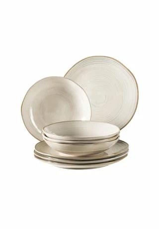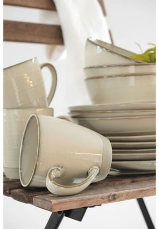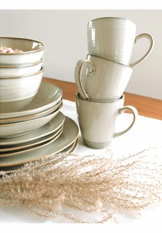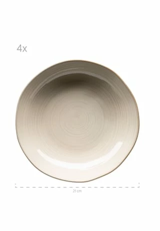 Moderner Brit-Chic für Ihren Esstisch – dieses Versprechen löst die Serie NOTTINGHAM der österreichischen Traditionsmarke MÄSER perfekt ein: Aufwändig gefertigt aus hochwertigem Steinzeug, designed um eine aufregende Brücke zwischen Retro- und modernem Look zu schlagen. Neben seinem grundlegend unvergleichlichen Charakter glänzt dieses Frühstücksgeschirr Service nicht zuletzt auch dadurch, dass kein Teil exakt wie das andere aussieht. Eine händisch aufgetragene reaktive Glasur und organische Formen anstelle von perfekten Rundungen sind hierfür ausschlaggebend. Mit diesem Service Set aus der Serie NOTTINGHAM verleihen Sie Ihrem Esstisch nicht nur zum festlichen Brunch, sondern an 7 Tagen in der Woche die perfekte Eleganz. Dieses 8-teilige Speiseservice besteht aus: • 4 x Speiseteller flach à Ø 26 cm • 4 x Suppenteller tief à Ø 21 cm (600 ml Füllvolumen) Alle Teile sind dauerhaft spülmaschinen- und mikrowellengeeignet, und dadurch äußerst pflegeleicht.