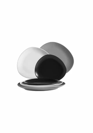 Die Marke Mäser steht mit ihrem Namen für Modernität, Innovation und Vielseitigkeit. Mit der Serie GLENDALE haben Sie es wieder geschafft Ihrem Namen alle Ehre zu machen. Lassen Sie sich von dem schlichten und zeitlosen Begleiter überzeugen. Unverwechselbar im Aussehen und äußerst flexibel im Einsatz – ein krisenfestes Multitalent. Dieses Keramik Geschirrset besteht aus: 2 x Dessertteller à 21 Zentimeter in Schwarz 2 x Teller flach à 26 Zentimeter in Weiß 2 x Teller flach à 29,5 Zentimeter in Grau